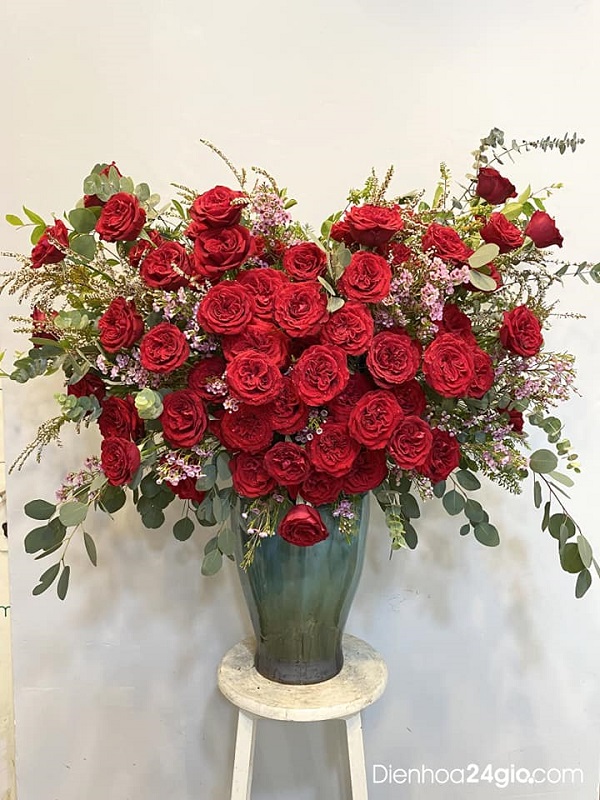 Có một bình hoa hồng rực rỡ trưng trong nhà vào ngày Tết sẽ giúp cho không gian gia đình bạn trở nên sang trọng, đồng thời cũng thể hiện mong ước về tình yêu, hạnh phúc được vẹn tròn, viên mãn trong năm mới.